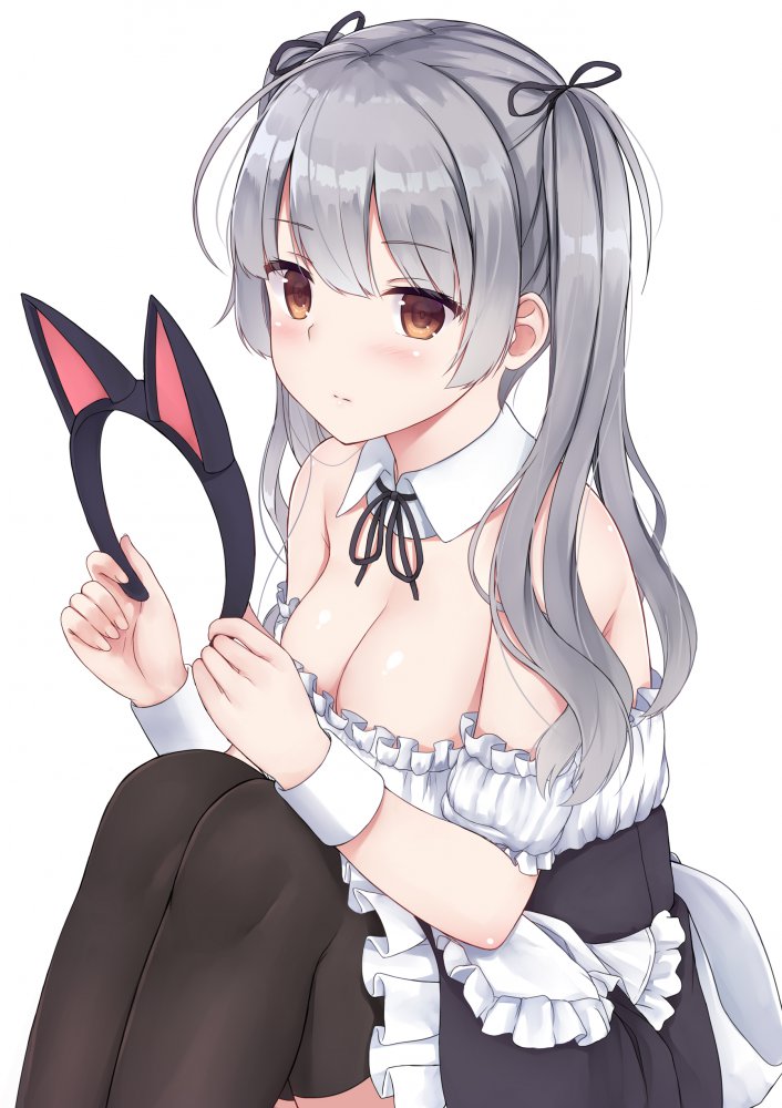 黒髪ツインテール女子の白下着から胸の谷間が見える三次元AIエロ画像をまとめました。(その1)