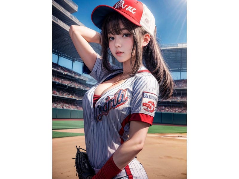 3次元画像(実写/リアル)野球女子のスポーツAIコスプレ画像