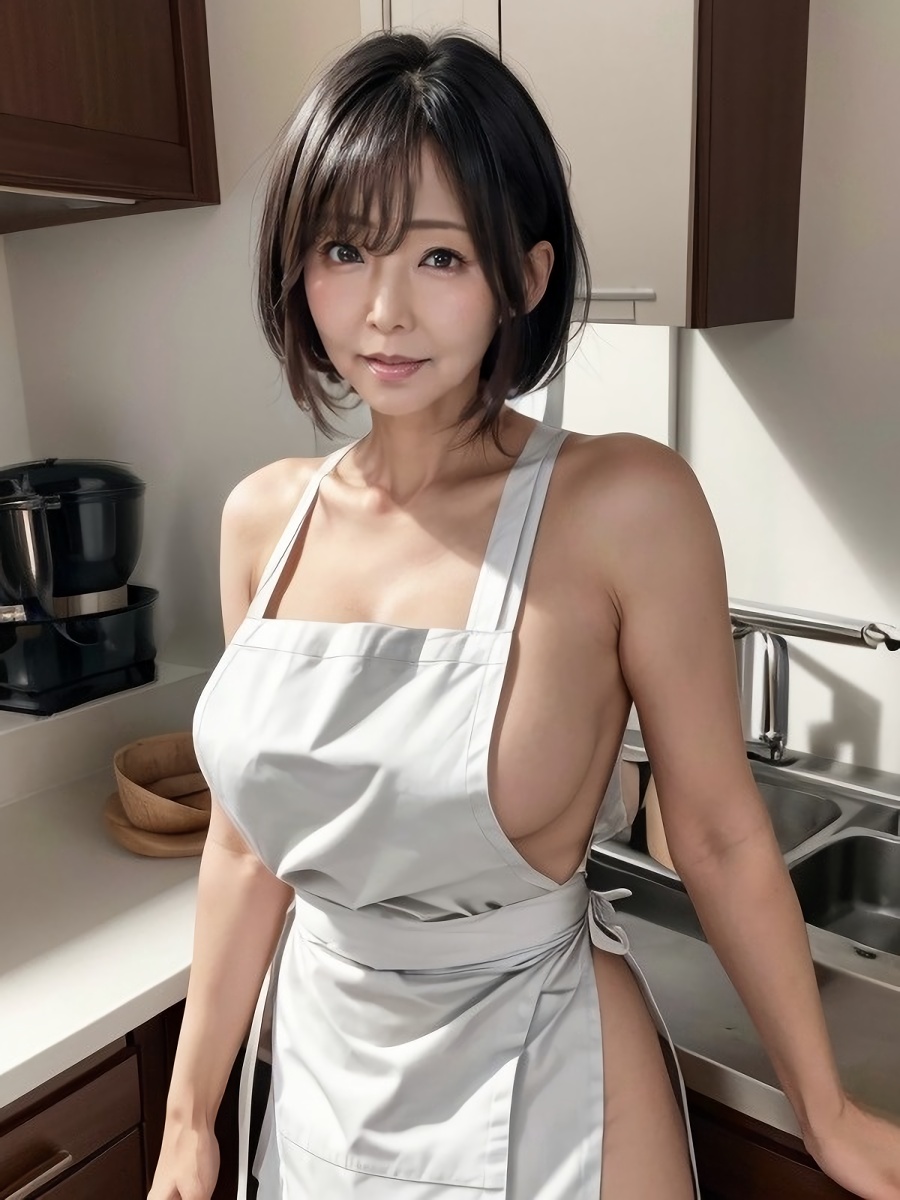 裸エプロンがエロい黒髪美人熟女の実写・リアル系AIエロ画像(その1) 3次元画像(実写/リアル)2025年7月2日スポンサーリンク■裸エプロンを着る黒上美熟女の三次元AIエロ画像をまとめました。(その1)■画像一覧