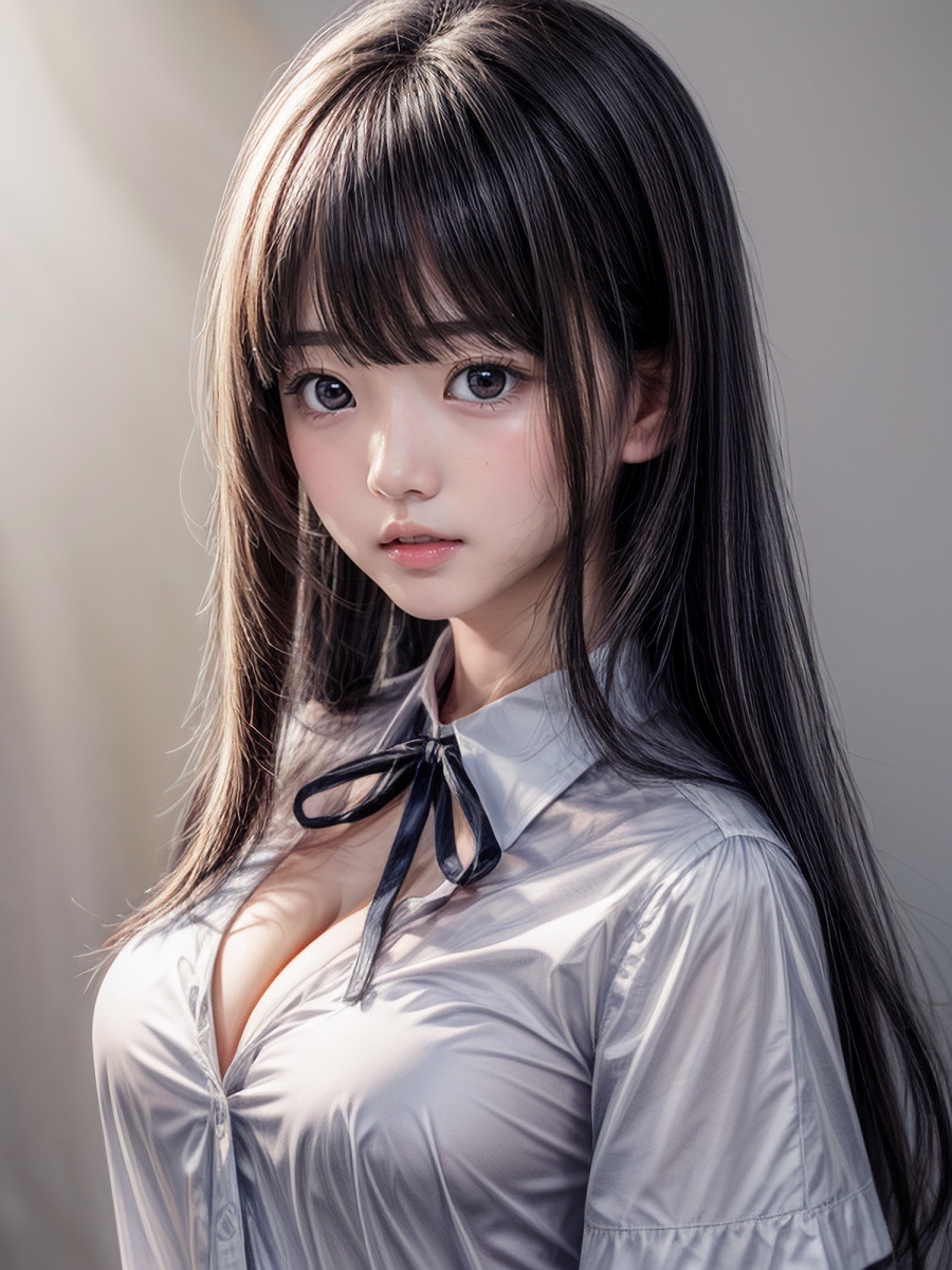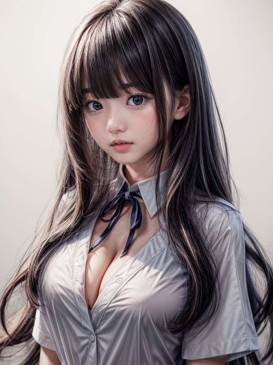 黒髪ロングヘアAI女子さんのYシャツリボンのコスプレ画像